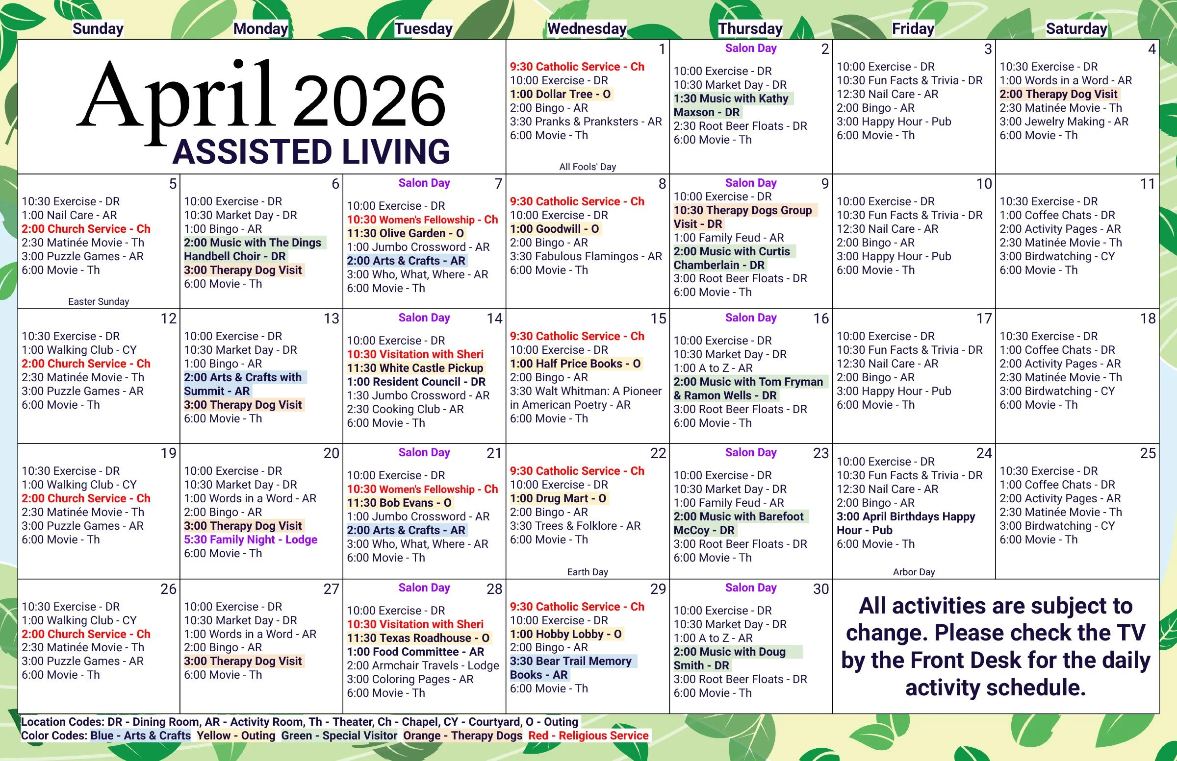 ASSISTED LIVING CALENDAR