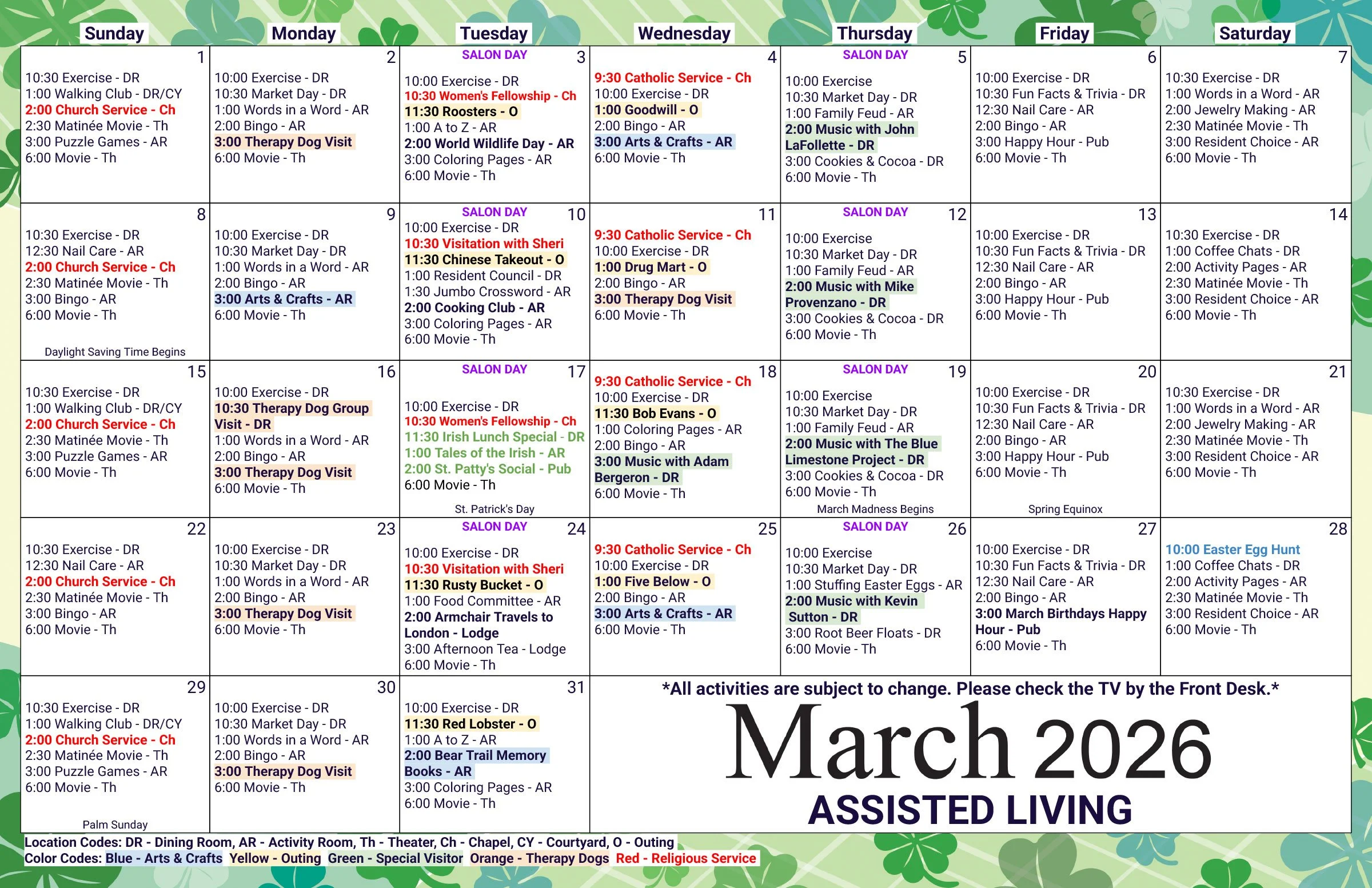 BROOKE CALENDAR ASSISTED LIVING CALENDAR